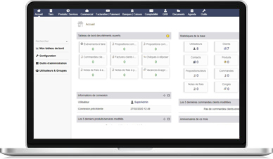 DomeERP propose un certains nombres de fonctionnalités en standard. En outre, la possibilité de pouvoir en ajouter selon votre activité.